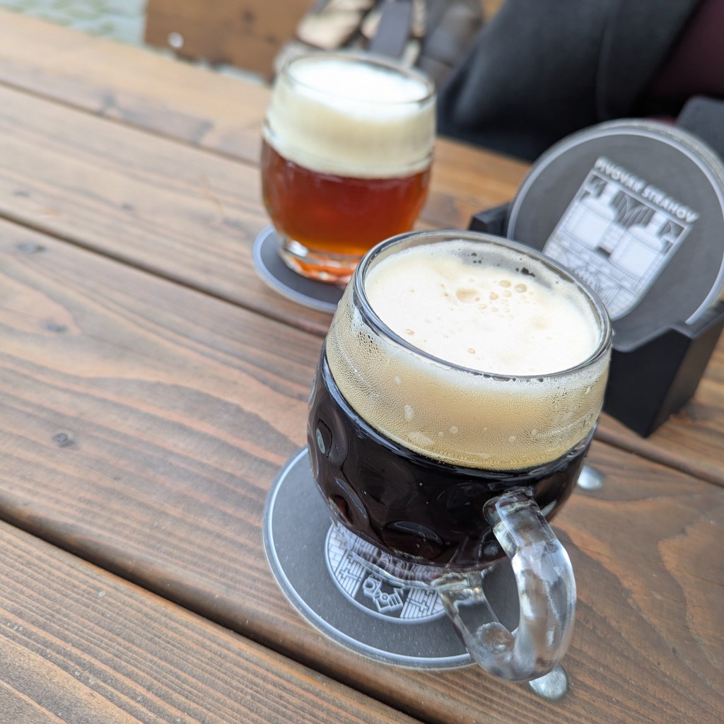 We walked off lunch climbing up to Petrin tower and exploring the Strahov monastery. The monastery, with its beautiful library and gallery, is well worth visiting but conveniently also houses a brewery. Here they make a number of different styles, modern and classic. We started off with their amber and dark lagers which are both perhaps a bit richer and more bitter than other examples.
