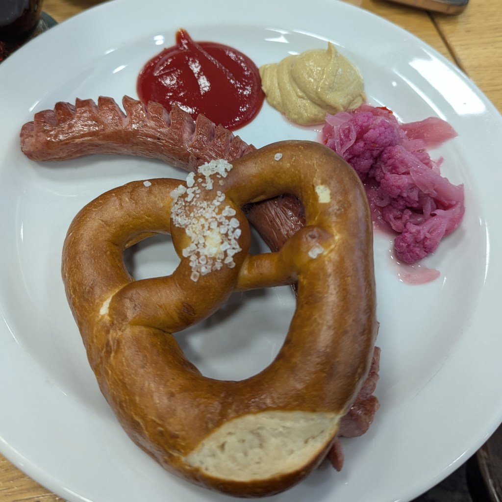 First up the Řezané, which was paired with a probably not so traditional pretzel and sausage. I had anticipated the layering of dark beer on top of light as something of a novelty, but I really found this to add character and complexity in a way neither of these beers had individually. Bitter, sweet, fluffy, it went down a treat. If such a thing as a monotony for decent Czech beer exists, I can see this being something of a remedy.
